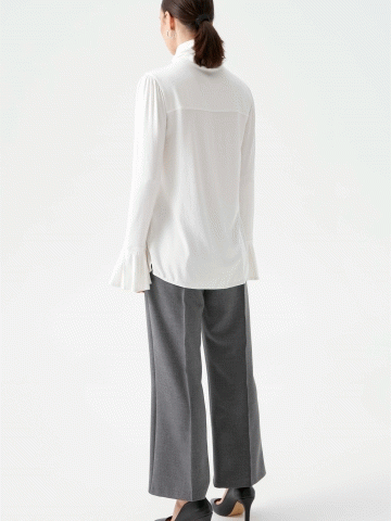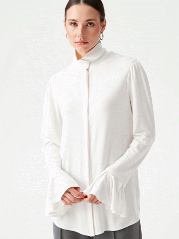 Pamuk kumaşı ile konforlu bir kullanım sunan bluz, şık tavrıyla asil bir silüete bürünüyor.