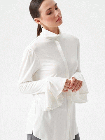 Balıkçı Yaka Manşetleri Volanlı Bluz - Ekru