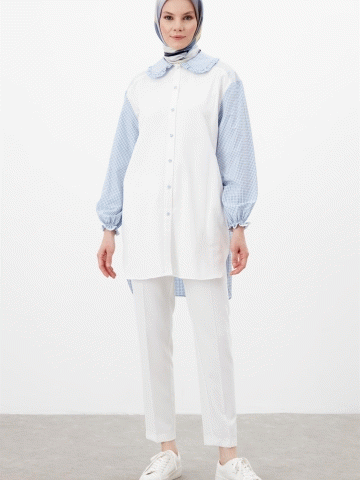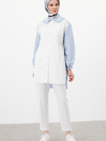 Bebe Yaka Pötikareli Tunik - Açık Mavi