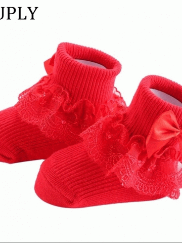 Bow Lace Baby Socks For Newborn Winter Keep Warm Cotton Baby Girls Sock Cute Toddler Socks Princess Style Baby Accessories