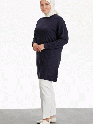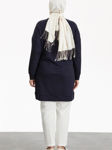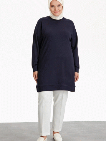 Büyük Beden Yuvarlak Yaka Tunik - Lacivert