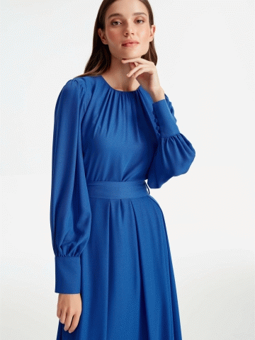 221EL7173TB.01 - Büzgü detaylı Elbise - Saks - tugba.com - Giyim>Elbise - Kampanyalı Fiyatlar, Taksitli Alışveriş ve Mağazadan İade İmkanı!
