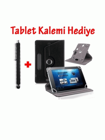 Siyah Casper S38 Plus Tablet Kılıf Deri Standlı Dönerli Universal 8 Inç
