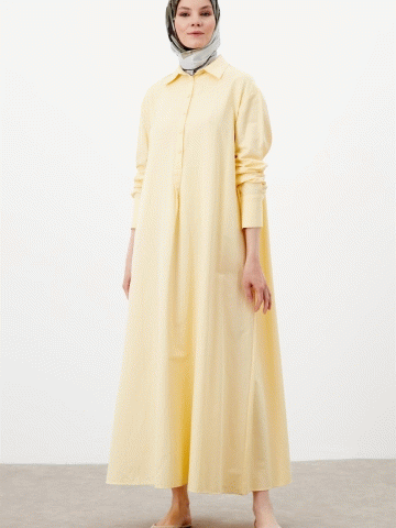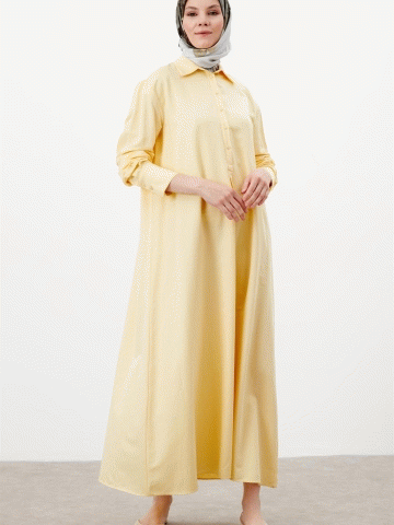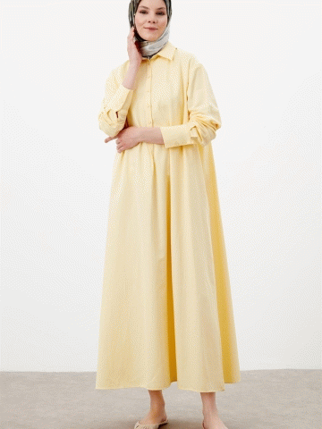 Düğme Kapamalı Basic Elbise - Sarı