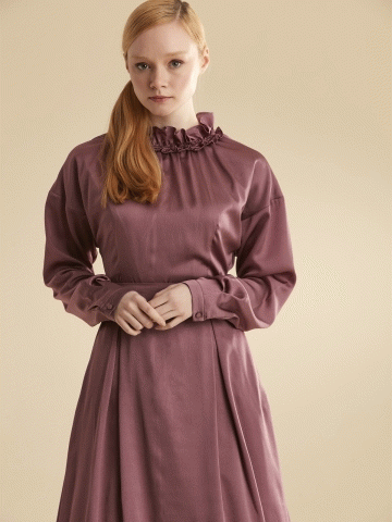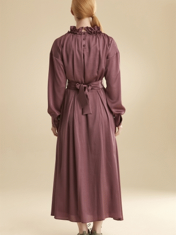 Fır Fır Yaka Kuşaklı Elbise - Gül Kurusu