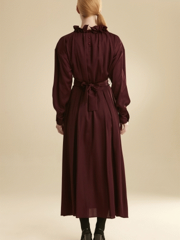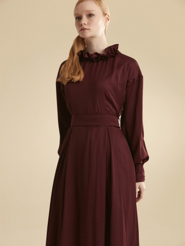 Fır Fır Yaka Kuşaklı Elbise - Mürdüm