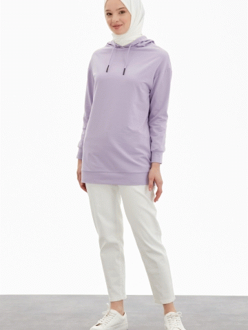 Kapüşonlu Sweatshirt - Lila