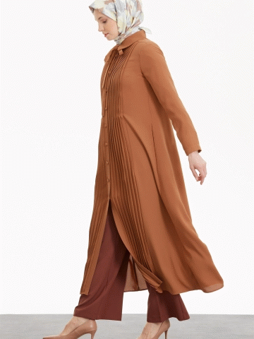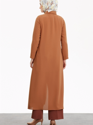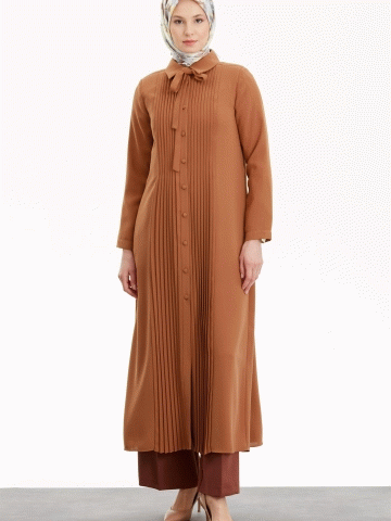 Kravat Yaka Piliseli Pardesü - Kiremit