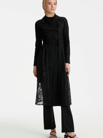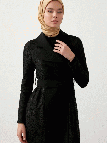 Kruvaze Kapama Dantel Kap - Siyah