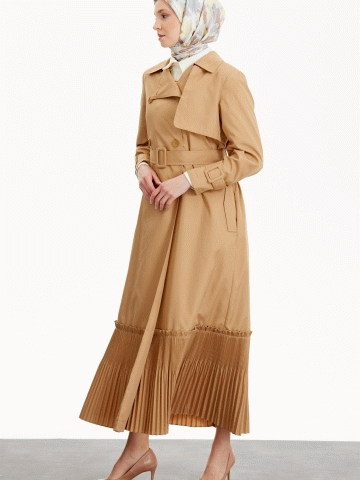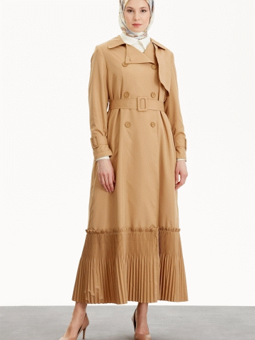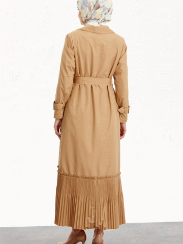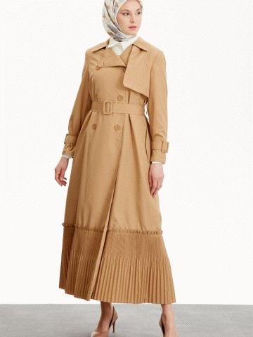 Kruvaze Yaka Piliseli Trençkot - Bej
