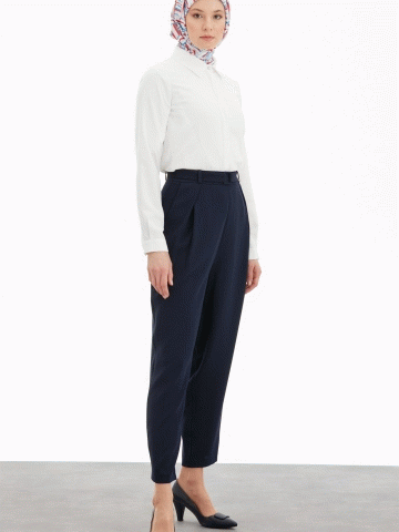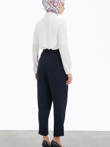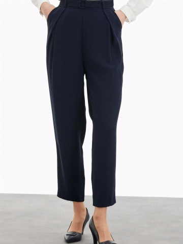 Pile Detaylı Havuç Pantolon - Lacivert