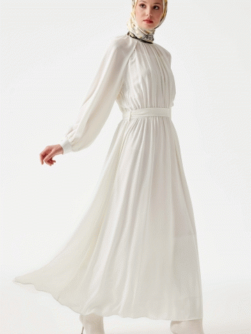 Özel günlerinizde tarzınıza şık bir dokunuş yapmaya hazır elbise, kuşak detayıyla feminenlik dozunu yükseltiyor.