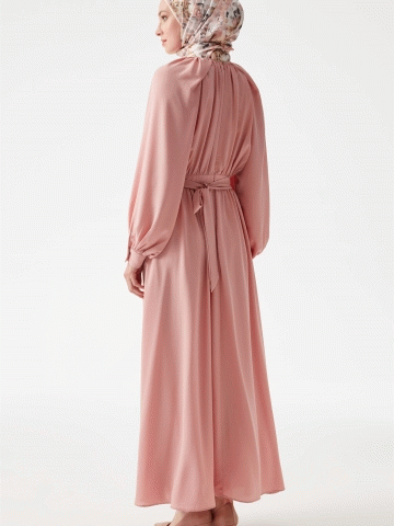 Özel günlerinizde tarzınıza şık bir dokunuş yapmaya hazır elbise, kuşak detayıyla feminenlik dozunu yükseltiyor.