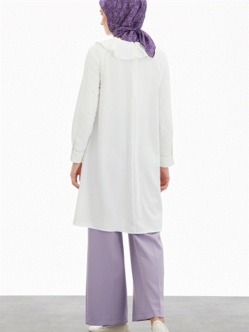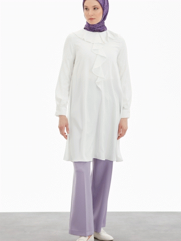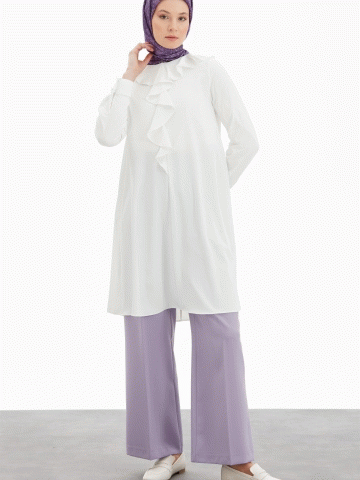 Sıfır Yaka Volan Detaylı Tunik - Ekru