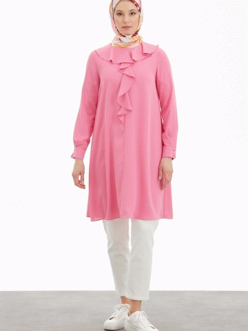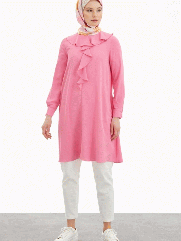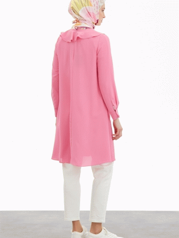 Sıfır Yaka Volan Detaylı Tunik - Fuşya