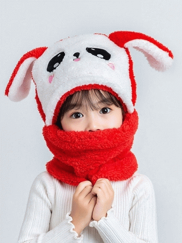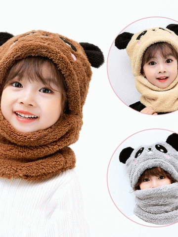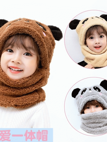 Winter Children Hat Plus Fleece Kids Caps Cartoon Hat For Girls Boys Scarf Thicken Cap Newborn Photography Baby Stuff